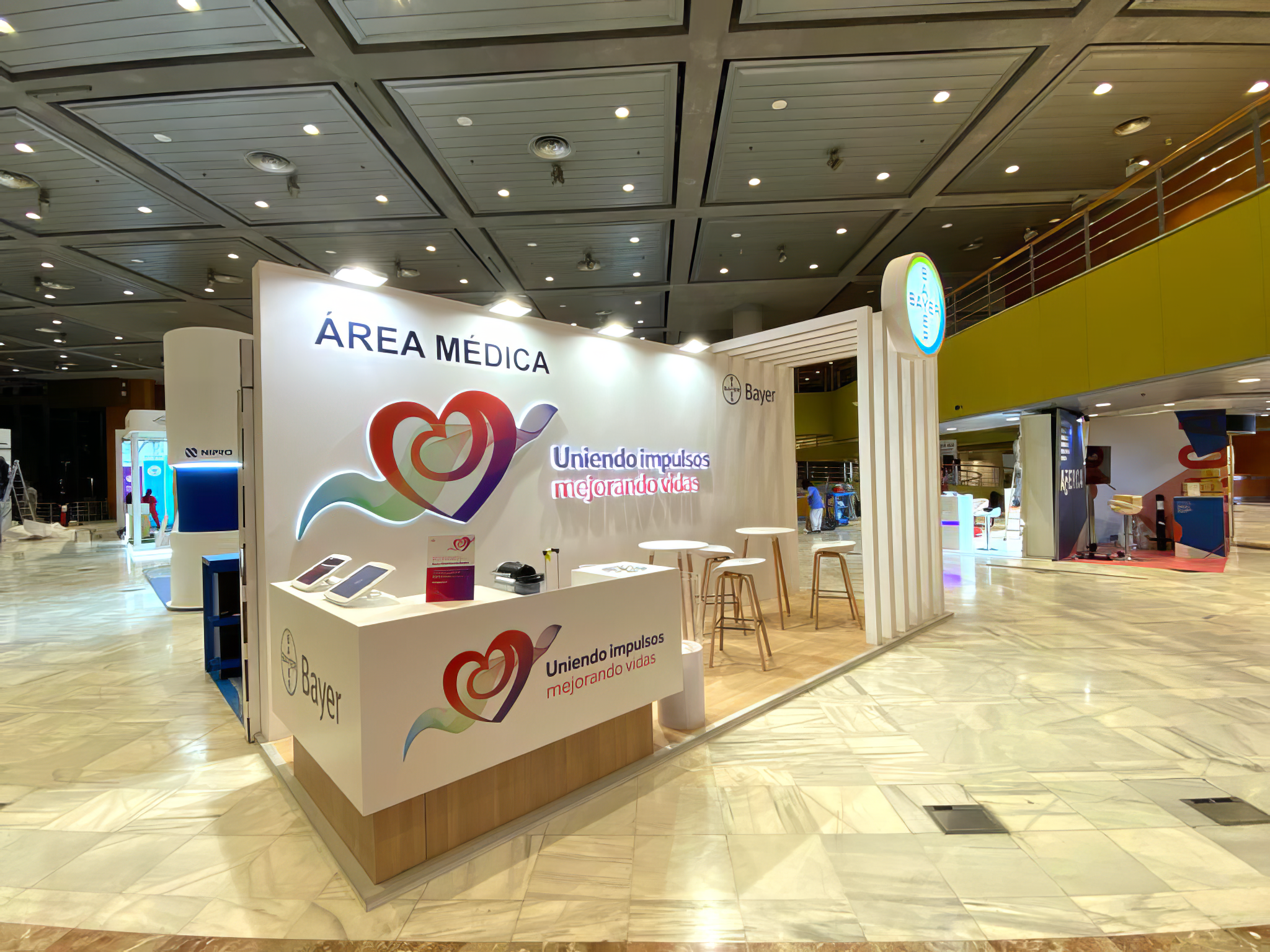 The concept was built around a custom symbol inspired by the fusion of a heart and a kidney, reflecting the connection between cardiovascular and renal care. From there, we created a flexible identity system that combined product-inspired colours, Bayer’s corporate universe and a graphic language designed to express innovation, care and quality of life.